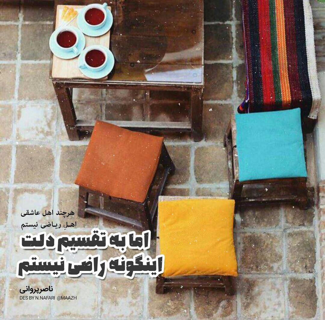 هرچند اهلِ عاشقی،اهلِ ریاضی نیستم اما به تقسیم دلت اینگونه راضی نیستم #ناصرپرواني ➗💔